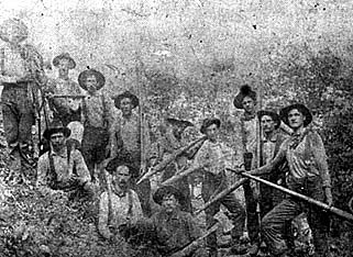 Men hauling lumber on wagons from West Buffalo to Andrews and later from Circular Mills at Little Snowbird and Birch Springs: Sherrill Colvard, Joe Lovin, Pearl Slaughter, George Patterson, Bill Newman, Tom Roberts, Tom Gladden, Mack Collett, Dock Harden, Dennis Williams, Pole Percy, Charlie Hooper, Tom Cameron, Algie West, Andy Phillips, Grover Blevens, Bob West, Rube Rogers, John Rogers, Zale Adams, Tom White, McClain White, and Zeb Whitaker.